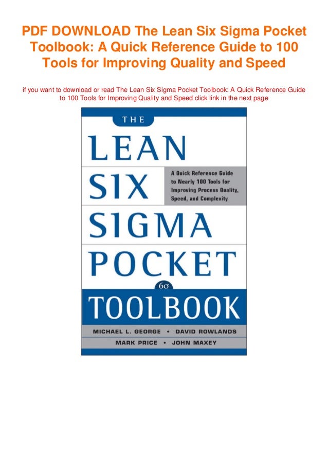 A Quick Reference Guide to 100 Tools for Improving Quality and Speed by Michael L. I was cleaning up my office today and found two extra copies of The Lean Six Sigma Pocket Toolbook written by Michael George David Rowlands Mark Price and John Maxey of George Group published by McGraw-Hill. A Quick Reference Guide to 100 Tools for Improving Quality and Speed PDF The Lean Six Sigma Pocket Toolbook.