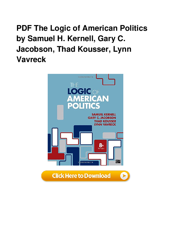 Kernell Jacobson Kousser and Vavreck The Logic of American Politics 8th edition SAGE Publishing 2018 b. You can choose to download either the PDF version or the. Jacobson Thad Kousser and Lynn Vavreck.